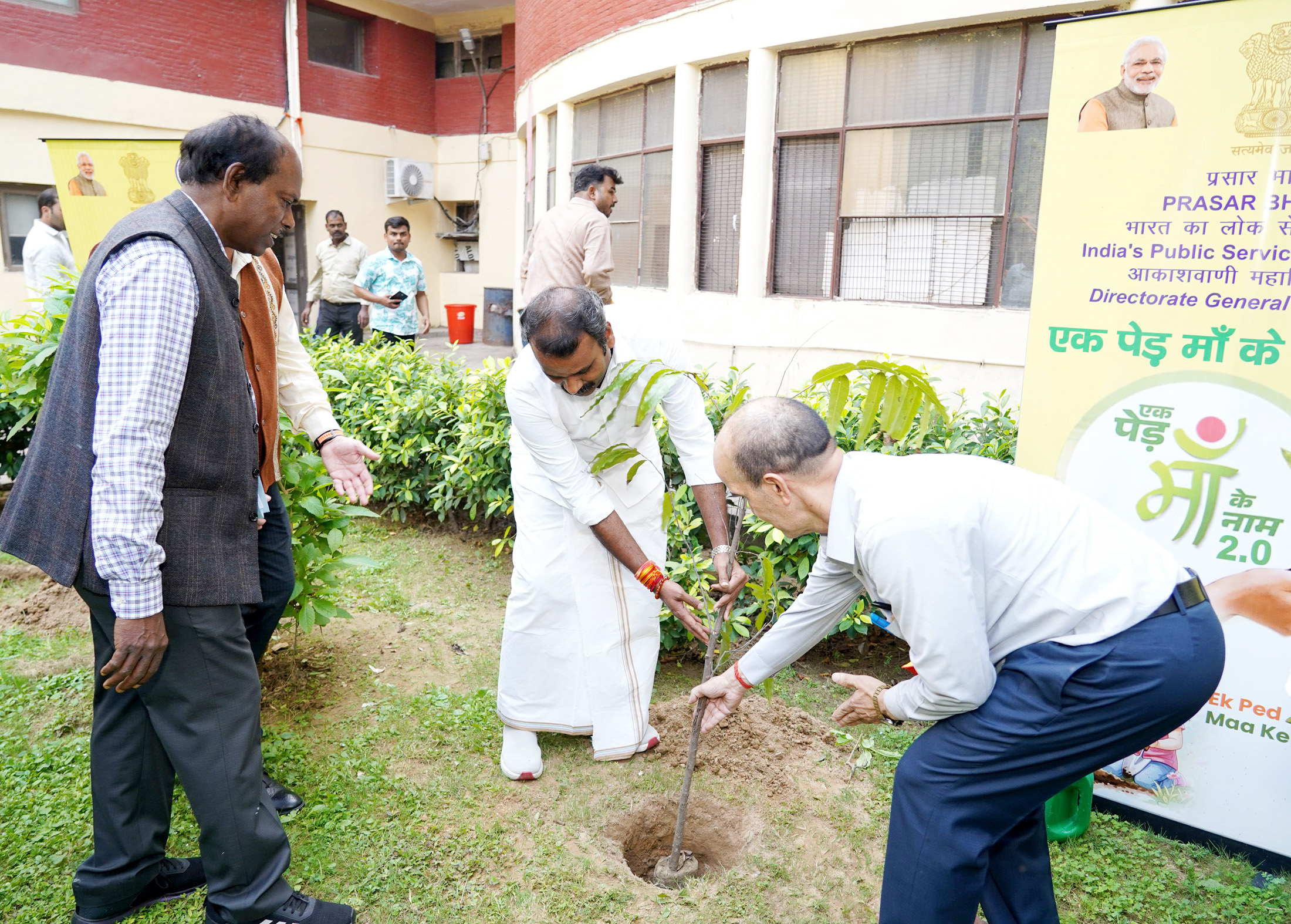 The Minister of State for Information & Broadcasting and Parliamentary Affairs, Dr. L. Murugan planting a sapling during ‘Swachhta Hi Seva’ Campaign, in New Delhi on October 31, 2025.