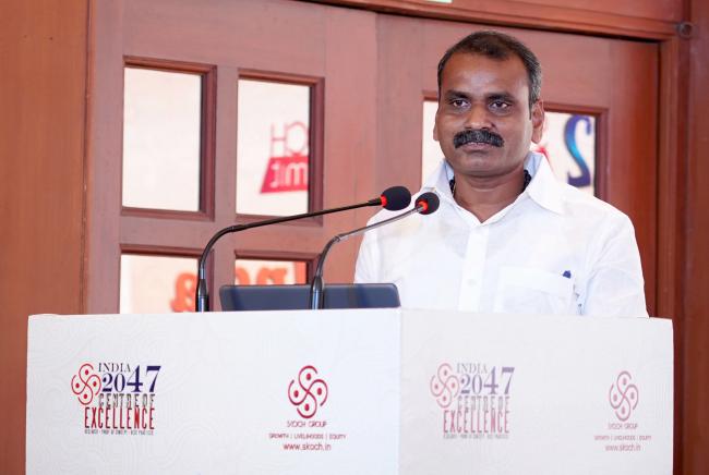 सूचना एवं प्रसारण तथा संसदीय कार्य राज्य मंत्री डॉ. एल. मुरुगन, नई दिल्ली में एस.के.ओ.सी.एच. समूह के अध्यक्ष श्री समीर कोचर द्वारा लिखित पुस्तक 'मोदीनॉमिक्स: द जर्नी ऑफ इन्क्लूसिव ग्रोथ' के विमोचन के अवसर पर संबोधित करते हुए।